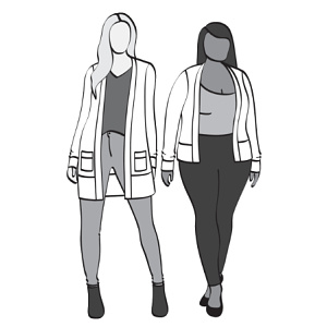 Nakonec první volba padla na Blackwood Cardigan. Jedná se o .pdf střih, na který už delší dobu různé šicí blogerky a vlogerky pějí chválu a nedávno byl na stránkách PatternReview.com dokonce zvolen střihem roku 2017. K dispozici je ve dvou variantách, kratší a delší, s kapsami a bez.