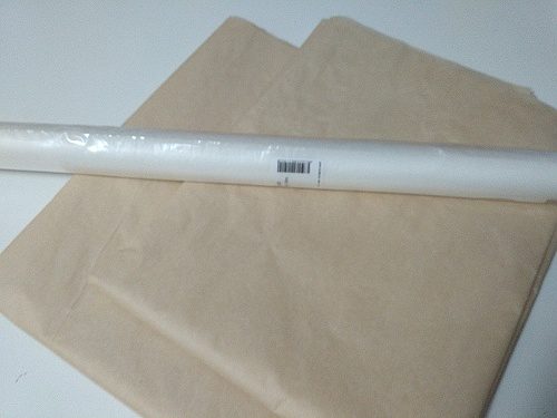 1 – Začnu střihovým papírem. Jistě znáte speciální střihový papír, který se prodává v papírnictví. Já se přiznám, že jsem ho dlouhé roky neznala a nepoužívala, měla jsem totiž zdroj jiného papíru, dostávala jsem velké archy balícího pergamenového papíru – hádejte odkud – z řeznictví;-) Zbyly jim tam z minulých dob, kdy se všechno maso a uzenina balilo do papíru. V současnosti mám pocit, že nás mikrotenové sáčky jednou zavalí a zadusí, ale když jste si tehdy z obchodu přinesli třeba játra zabalená do papíru, tak to tedy musím říct – zlatý sáček;-) Při likvidaci obchodu jsem dostala opravdu tučnou roli těchto papírů, ale nic netrvá věčně a po letech už zdroj vyschl. Zakoupila jsem tedy originál střihový papír a byla jsem nemile překvapená. Papír je strašně tenký a hlavně se příšerně trhá, byla jsem zvyklá na něco jiného. Už jsem začala pomýšlet na to, že budu obcházet obchody a prosit, jestli by mi neodprodali třeba kilo ze svých zásob. A přitom mne vůbec nenapadlo hledat u zdroje – v papírnictví. A světe div se, pergamenový papír se běžně prodává! Takže pokud i vám vadí, jak se střihový papír trhá a roluje, doporučuju vyzkoušet pergamen.