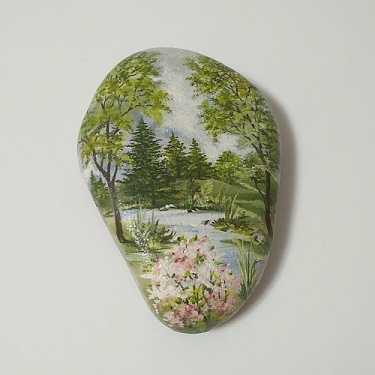 Původně to tedy bylo dobré k zavěšení na zeď jako dekorace, je to nádherně malovaný kámen. Kupovala jsem ho na Fler od prodejkyně jménem Hanyfa, bohužel už tam tento profil není, což mne mrzí, malba je to nádherná. Tak dlouho jsem přemýšlela, kam kámen zavěsím, až jsem ho jednou použila jako nejrychleji dostupnou těžkou věc jako závaží na střih. Dříve jsem o existenci závaží na střih ani nevěděla, v případě potřeby jsem na střihový díl položený na látce pokládala vše, co bylo zrovna v dosahu – sponkovačku, nůžky, hrnek s čajem. Tak proč ne kámen? Zjistila jsem, že mi takto dělá větší radost, než kdyby byl zavěšený na stěně. Beru ho do ruky, je příjemný, hladký, zaoblený a těším se pohledem na krásnou malbu, která by zdálky na zdi ani nevynikla. Ještě používám další dva kameny, ty přinesla pomalované kdysi moje dcera ze školky, tak jsem je zalakovala, aby se barvičky neotíraly a ona má velkou radost, že její výtvor i po letech uchovávám.