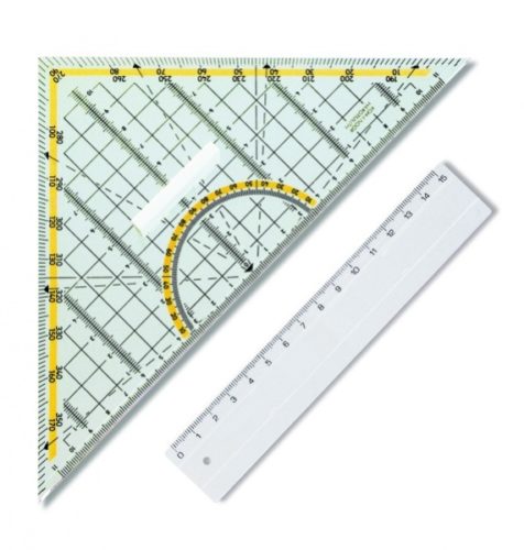 6 – Kromě krejčovského metru (a pokud dosud nemáte svinovací, tak si jej určitě pořiďte) občas potřebujete i nějaké menší měřidlo. Mimo obyčejného 15 – 20 cm pravítka z papírnictví se vám občas bude hodit i tento trojúhelník.