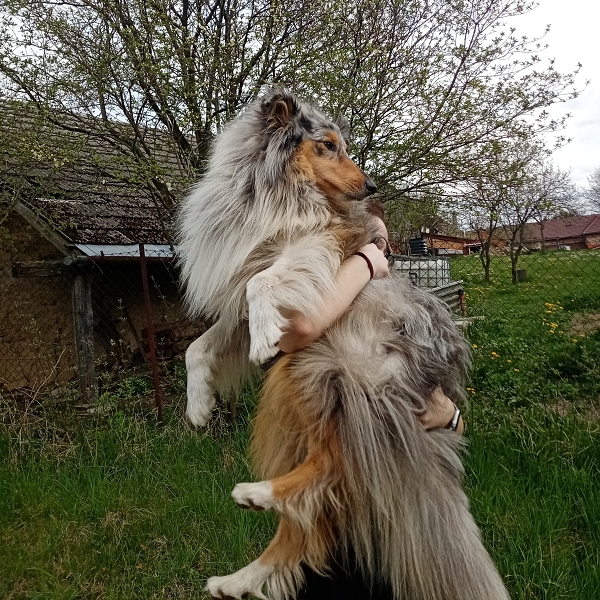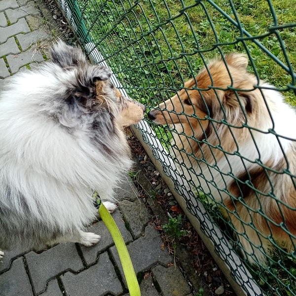 A protože život není jen o šití a vyšívání, tak posdílím i něco z osobního života. Pokud si pamatujete to roztomilé plesnivě šedivé štěnátko, které jsem tu na konci roku 2023 sdílela, tak koukejte, jak nám chlapec vyrostl. Máj je lásky čas, tak chodí za holkama (aspoň přes plot):