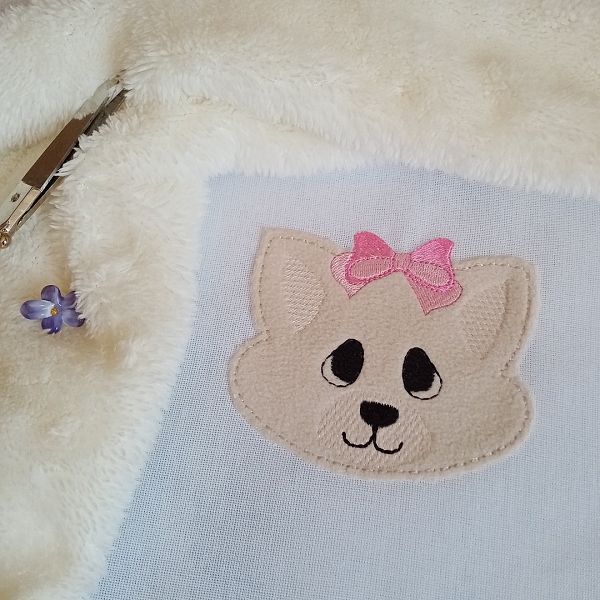 Je rychlejší, než klasické krytí okrajů saténovým stehem a hodí se pro netřepivé látky a úplety, anebo naopak když chcete roztřepené okraje použít jako zdobný prvek. Chce to ale více přesnosti při obstříhávání okrajů, protože u této techniky se nepřesnost neschová pod cikcakem a na obstříhnutí okrajů jsou už podle mne opravdu potřeba zahnuté nůžky, které se tady špatně shánějí. Pokud by měl někdo zájem otestovat tuto výšivku a pak se se mnou podělit o výsledek a názory na tuto techniku, tak mi prosím napište, design vám pošlu a pak ráda využiju vaši zpětnou vazbu pro další práci.