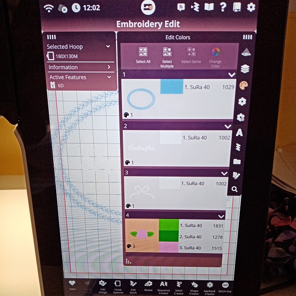 Teď mám objekty seřazené správně tak, jak je chci vyšívat, abych nemusela zbytečně opakovaně měnit stejnou nit.