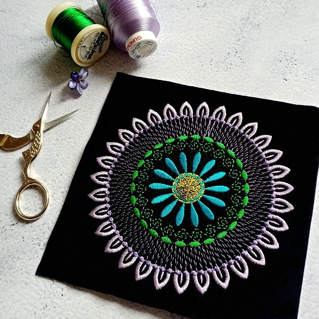 Například tady kamarádka vyšívala na kabát moji mandalu, která v původní verzi vypadá takto: