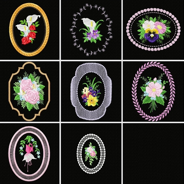 Obsahuje 8 květinových výšivek pro rámečky 13×18 cm.