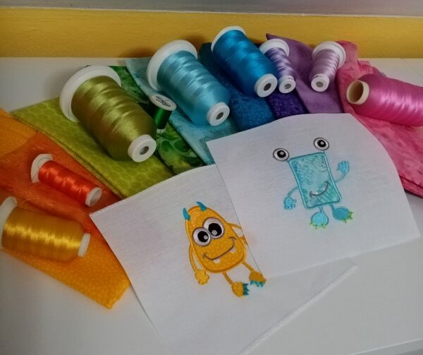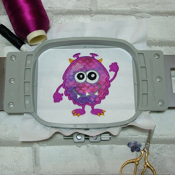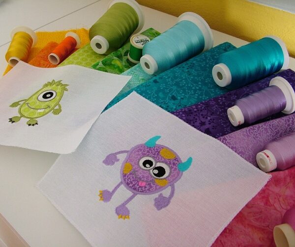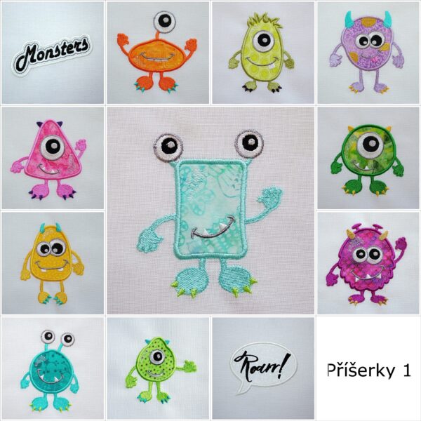Jedná se o sadu Příšerky, která se tak trochu vymyká z mých tradičních povětšinou květinových kolekcí. Asi o to víc mě tvorba těchto designů bavila. Ještě lepší bylo pak jejich vyšívání. Dá se s nimi totiž krásně vyhrát, jejich vzhled se může lišit podle použité aplikační látky, takže se nikdy neomrzí.