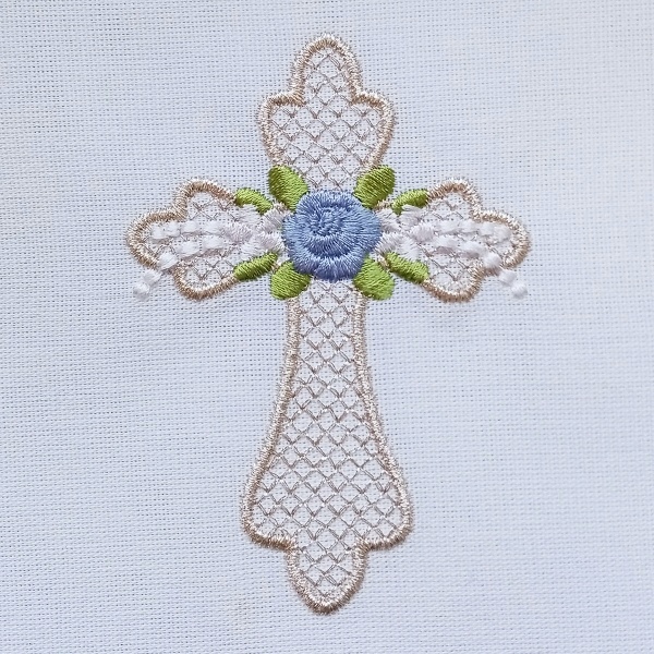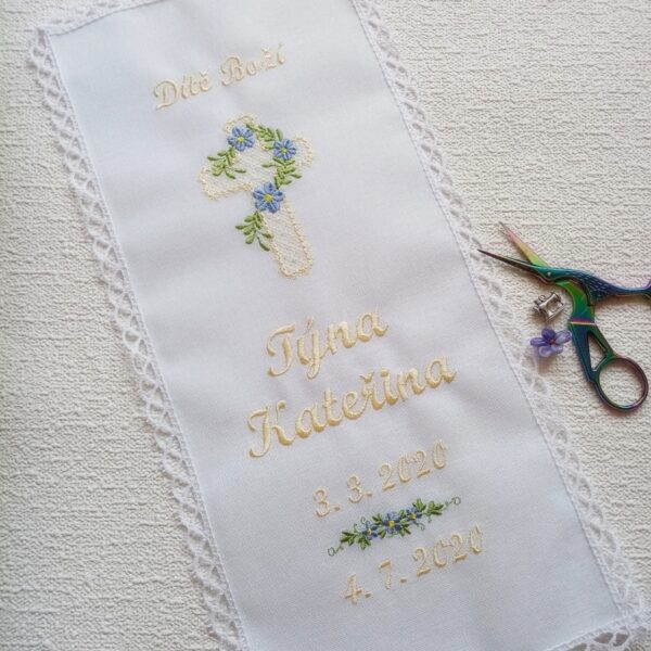 Kromě křestních roušek se kříže hodí na spoustu jiných projektů, tady je například jedna z mých zákaznic použila na obaly biblí.