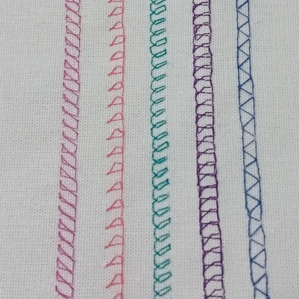 Je to oblíbené lákadlo a některé stroje jich mají v nabídce skutečně spoustu. Jsou fajn, při šití se pro ně najde využití, nicméně všechny mají jedno společné: zatímco overlock pracuje se 3-4 nitěmi, takže krásně obnitkuje látku, kterou těsně před jehlami nůž ořízne, šicí stroj pracuje jen dvěma nitěmi a overlockový steh jen imituje tím, že několika stehy vykreslí ten požadovaný tvar.