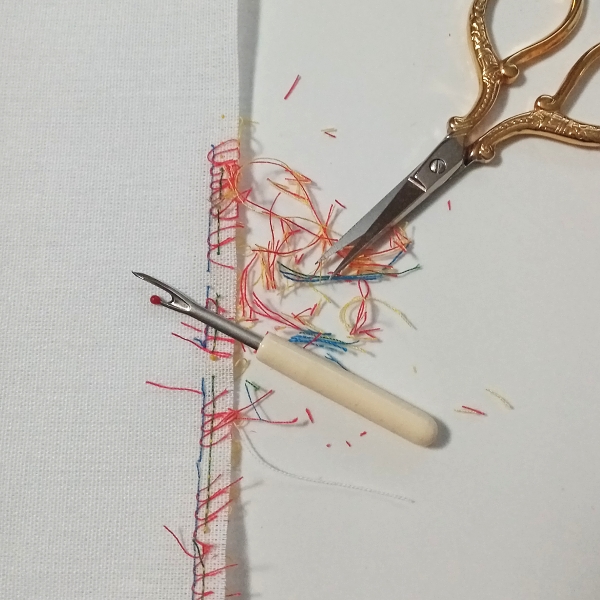 Nejjednodušší je si ty jehelní stehy nastříhat po úsecích, ať zbytečně netaháte nitě třeba z celého bočního švu trika, je to zbytečná práce. U tužších materiálů to může jít hůř, než u jemnějších, v takových případech tedy stříhejte po kratších úsecích.
