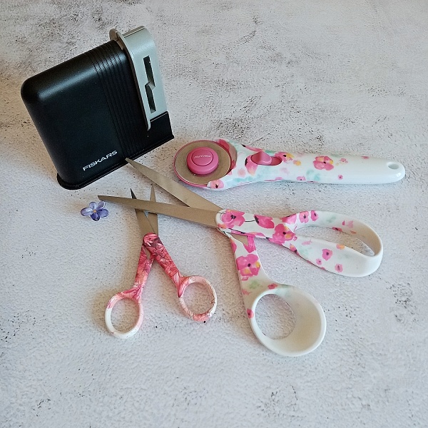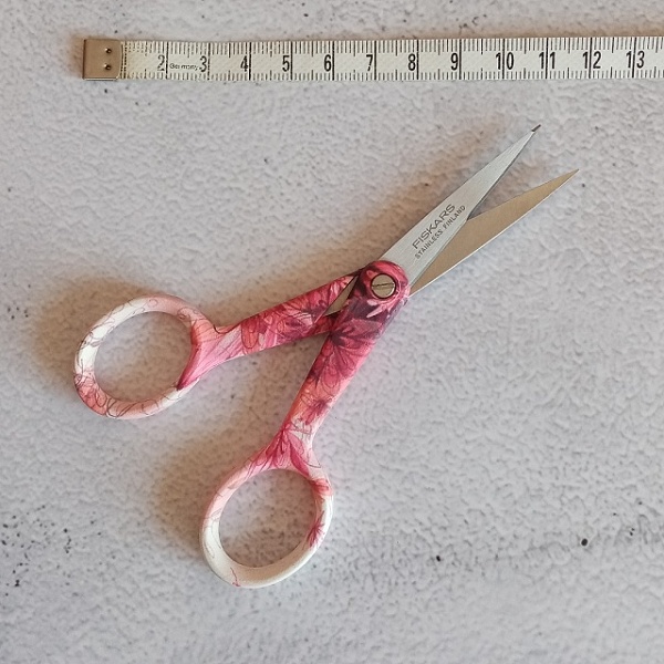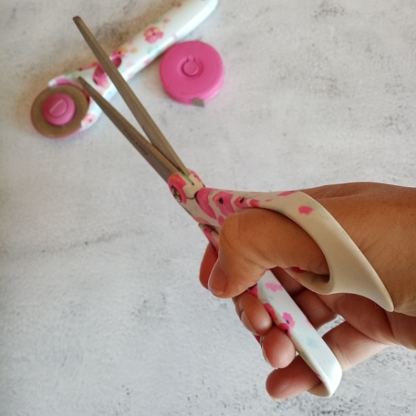 Říkala jsem si, že Fiskars s plastovou rukojetí by mohly být fajn jako nůžky k šicímu stroji. Sice je neměli ve stejném kytičkovém designu, ale to samozřejmě nevadí a jsem moc ráda, že jsem si je pořídila. Jsou šikovné do ruky, lehké, ostré na látky i na odstřižení nití a díky výrazné barvě je vždy na stole rychle najdu. Navíc oproti plošším kovovým nůžkám se při šití lépe berou do ruky.