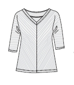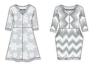 Střih je v časopise ve dvou variantách – se čtyřdílnou sukní ve tvaru A a se soudkovou sukní s nabíráním v pase a s kapsami.