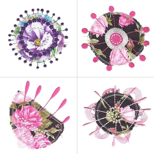 Jenže svetrovina není plátno, co když se v ní stehy budou topit? Chce to využít přece jen raději nějakou aplikaci, ale něco s přesahem, ne jasné uzavřené tvary. Tak další vzory z jiné rozpracované kolekce: