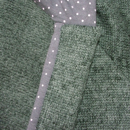 Byl to můj první projekt ze svetroviny, a protože ji mám doma nasyslenou ještě v několika odstínech, tak jsem pátrala po různých diskusích a šicích blozích po nějakých recenzích na kvalitu a trvanlivost materiálu. Podle toho, co jsem vyčetla, to vypadá, že svetrovina z různých várek a různého období, případně od různých výrobců, má i různé vlastnosti. Například na Facebookových stránkách Caramilly je hodně rozvětvená diskuse s asi 150 příspěvky týkající se zkušeností se svetrovinou, včetně fotografií, a je tam kompletní paleta názorů od „nežmolkuje ani po letech“ až po „po 1 vyprání nepoužitelné“. Caramilla sama na toto téma sepsala článek, kde popisuje své negativní zkušenosti, a hned v diskusi pod článkem se dají přečíst názory zase opačné. Takže asi nelze jednoznačně svetrovinu doporučit nebo zapudit, zřejmě je nutné si najít kvalitní zdroj, bohužel to půjde jen metodou pokus-omyl či na konkrétní doporučení. Jinak je to materiál úžasný – měkký, příjemný, teplý, pohodlný. Na šití to sice není bůhvíco, ale na nošení je velmi praktický. Budu doufat, že jsem jen trefila na špatnou várku a ty ostaní barevné varianty, které mám, snad budou lepší.