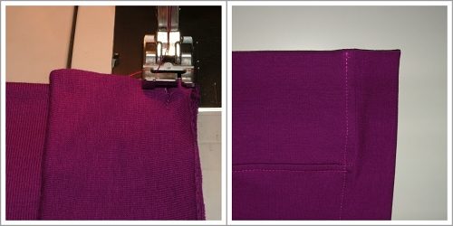Při všívání lemu je nutná pečlivost, každý milimetr je vidět. Kdo šijete na overlocku, tak víte, že když začínáte šití, látka se v okraji často posune a okraje neleží na sobě. U vnitřních švů se malinký posun ztratí, ale u vnějších je třeba šít velmi pozorně a v těchto případech doporučuji nespoléhat se jen na našpedlení, ale sešít si začátek na stroji, aby návaznost byla opravdu perfektní.