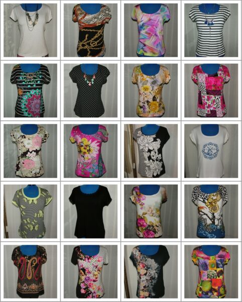 Tato koláž fotek je z roku 2013, tak mezitím už jsem některá trika vyřadila a naopak další přidala, ale stále platí, že tento střih se dobře šije, dobře nosí i dobře vypadá.