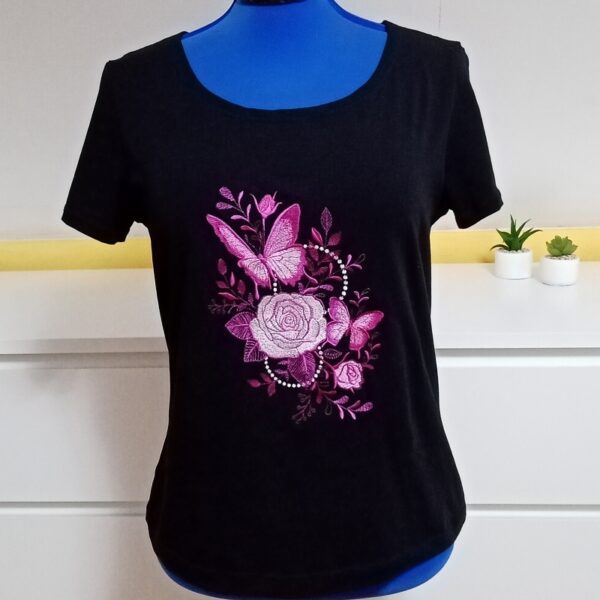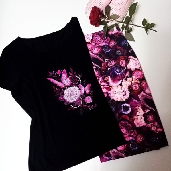 Střih na triko je z Ottobre 5/2018 – triko Duotone, rukáv zkrácen. Úžasná výšivka je od Urban Threads.