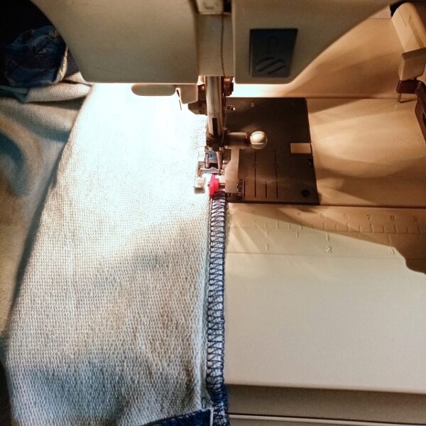 Okraje jsem začistila na overlocku, a protože se mi moc nechtělo do ručního přišívání podsádek a záložek slepým stehem, tak jsem po dlouhé době zase vytáhla patku pro slepý steh.