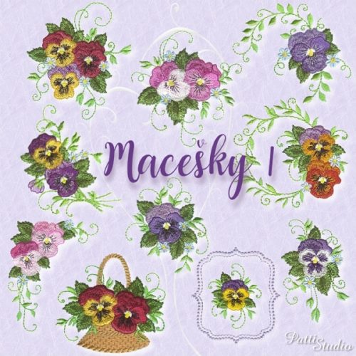 Momentálně ovšem jedu opět v kytkách, jak jinak;-). Dokončila jsem prezentaci sady Macešky 1 pro české zákazníky a kolekce je k dispozici zde. Pro čtenáře blogu nabízím časově omezenou 25% slevu na nákup. Do poznámky v košíku stačí napsat heslo „BLOG MACEŠKY“. Jako vždy sada obsahuje kromě vzorů i kompletní rozpis barevnice pro snadné vyšívání (samozřejmě v češtině). Vzory byly pečlivě tvořeny, aby měly co nejméně skoků a odstřihů mezi jednotlivými segmenty.