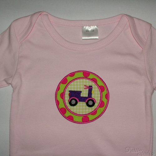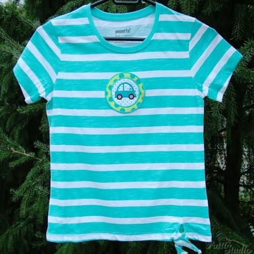 Na jednoduchém motivu si můžete vyzkoušet, jak se aplikace vyšívá. Připomínám, že aplikace jsou skvělé kromě zdobení i na zakrytí různých ušpinění či poškození oblečení, což se u dětí stane mrknutím oka. Motivy mají velikost kolem 9-10 cm, takže zakryjí i větší problém;-)