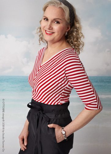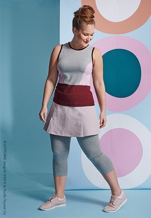 Specialitou tohoto čísla je sportovní outfit – zajímavě střihově řešený top, na který mimo jiné můžete skvěle využít své zbytky úpletů a nakombinovat si originální tílka, která nebude mít žádná jiná. A pak také zajímavou sukýnku s integrovanými legínami. Tento střih byl před pár lety v dětském Ottobre a byl mimořádně úspěšný. Holčičkám přinesl ten správný holčičí „look“, a přitom se v takovém modelu dalo lozit po průlezkách, viset třeba hlavou dolů, a nikde nebylo vidět víc, než by se slušelo. A zároveň v pase neškrtily dvě gumy. Dámám tento kousek přinese podobný efekt – legíny na sport s veškerým požadovaným komfortem, a přitom potenciálně rizikové partie zakryje sukýnka, která ale nebrání v pohybu a dodává ženskost. Pokud jste doteď jen pokukovaly po těch atraktivních běžkyních v přitažlivých sukýnkách, které se před časem vyrojily, tak teď se k nim můžete připojit ve vlastním modelu. Sukně na běhání, treking i jejich zateplené varianty na lyže jsou teď in!
