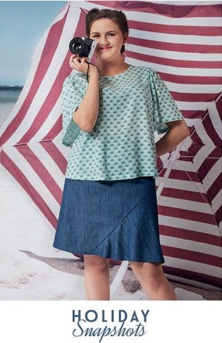 Obrázek níže prezentuje nejen jednu ze dvou sukní, které časopis nabízí (tu první jste mohli vidět výše, v džínovém provedení), ale také velmi univerzální triko z úpletu. Střih je spíše volnočasový, netvarovaný, ale jak je vidět na obrázku, bude to design použitého úpletu, který rozhodne, jak bude nakonec výsledný model působit.