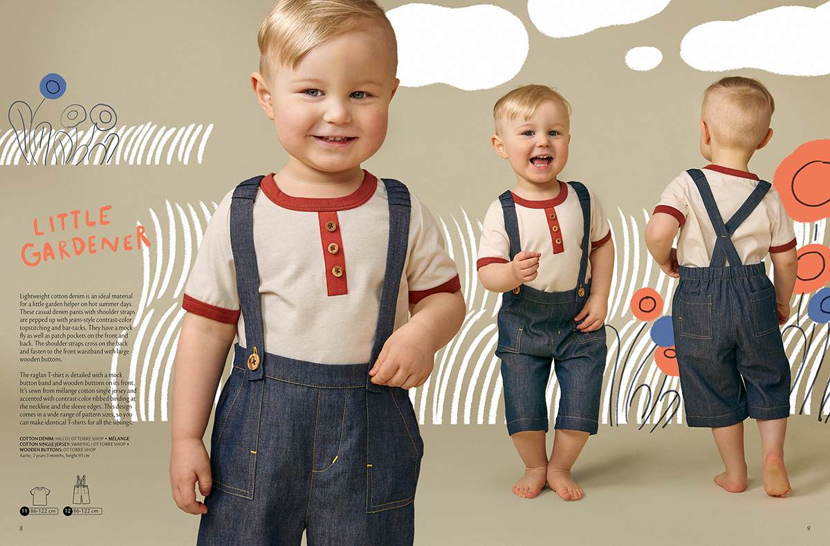Přehlídka začíná modely pro kluky ve velikostech 86-122. Ale vlastně proč jen pro kluky, při volbě látek v jiých barvách může krátké kalhoty s kšandami a vlastně i košili nosit v pohodě i holčička. Jen když tak dejte opačně krytí zapínání, mladší generace už to tak nehrotí, ale babičky by na to mohly být háklivé;-) Lněné kalhoty a košile z popelínu jsou super na teplé letní dny, látky jsou prodyšné a střihy jsou dostatečně pohodlné. Kalhoty mají vzadu v pase i v kšandách pro větší komfort při nošení vlečenou gumu. Pokud si nejste úplně jisté, jak na šití košilového límečku, jednoduchý ilustrovaný návod najdete v sekci Ottobre LAB.