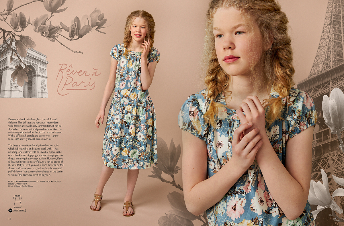 Pro větší slečny jsou určeny krásné letní šaty z voálu. Hodí se k žabkám na přehození přes plavky v horkých dnech na pláži, protože lehká látka bude rychle schnout nebo s úplně jiným stylingem jako romantický model pro zvláštní příležitosti. Originálně řešený výstřih je malinko náročnější na šití, ale konečný výsledek pak bude stát za to. Malý balonový rukávek lze nahradit bohatým nabíraným rukávem po lokty, který je u džínové varianty šatů na straně 57. Šaty jsou k dispozici ve velikostech 128-170.
