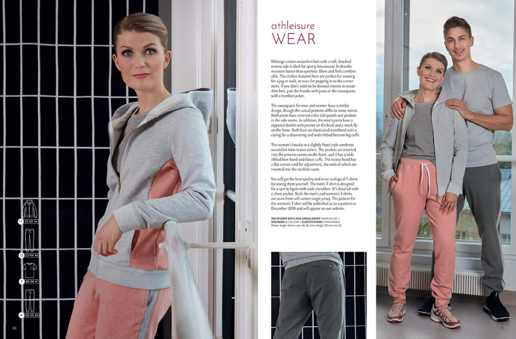 Ženy i muži zde najdou střihy na pohodlné tepláky, které muži doplní jednoduchým trikem a ženy mikinou s kapucí. Dámské střihy jsou v tomto čísle zaměřené spíše na menší velikosti, takže jsou v rozsahu vel. 32-44. Větší velikost mikiny (až do č. 52) najdete např. v čísle 5/2017, tepláky v čísle 2/2017.
