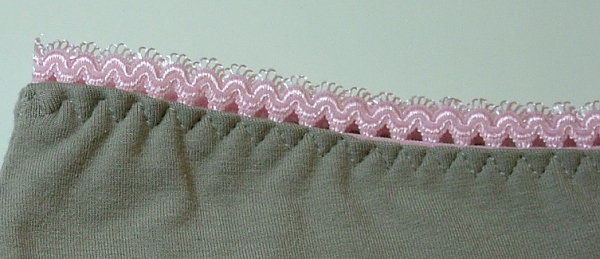 Mnohem líp kalhotky vypadají v černé variantě, ale to by zas nebyly moc vidět detaily šití, tak ač nerada, prezentuji tuto nehezkou holubičí variantu.