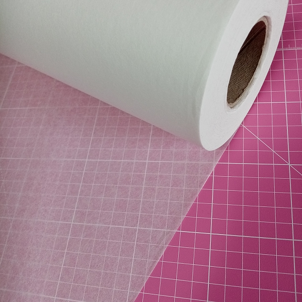 A celkem náhodně jsem přišla na to, že dobrou alternativou je vyšívací vlizelín. Vyšívám hodně, takže vlies kupuji po 100m rolích (lety prověřenou značku Sulky Gunold), a právě ten skoro nekonečný návin se mi hodil, když jsem kopírovala ze střihové přílohy střih na kalhoty, protože zatímco archy pergamenu bych musela lepit, vliesu jsem si ustříhla potřebný kus na celou délku nohavice. Kromě neomezené délky mi vyhovují i další věci: