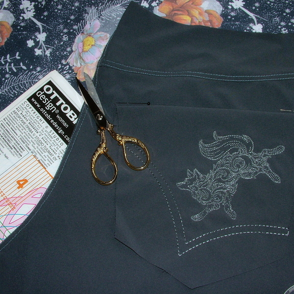 – rozešité kalhoty z šedého Silveru, které jsem tehdy stříhala s tím, že je do konce týdne akutně potřebuju do práce. Ehm, za měsíc to budou přesně dva roky, co jsem z práce odešla. Kalhoty stále nejsou hotové.