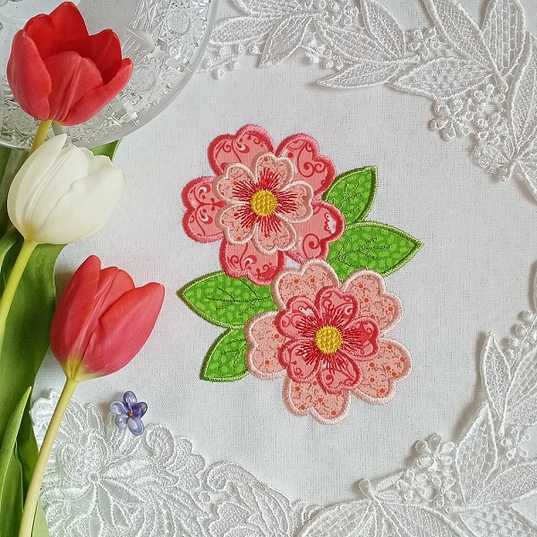 Další rozpracovanou sadou jsou květinové aplikace pro velké rámečky. Designy jsou hotové, z větší části otestované, zbývá nafotit, dopsat instrukce a vložit na web.
