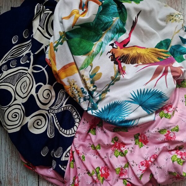 – rozešitá noční košile a tři trika, o kterých už teď vím, že budou jen „na doma“, protože jeden úplet jsem měla tak dlouho odložený v syslírně, že už mi dezén přijde tak trochu out a další úplety jsou příliš jemné a vím, že se hrozně rychle vytahají. Už jsem na toto téma kdysi psala příspěvek tady na blogu nebo na Instagramu, zda i ostatní mají dilema, jestli vůbec má smysl šít z látky, která se dopředu ukáže jako nekvalitní. Ze stejného e-shopu jsem totiž už viskózový úplet měla a vím, že po pár chozeních se roztáhl výstřih a celé se to tak nějak „vykloktalo“.