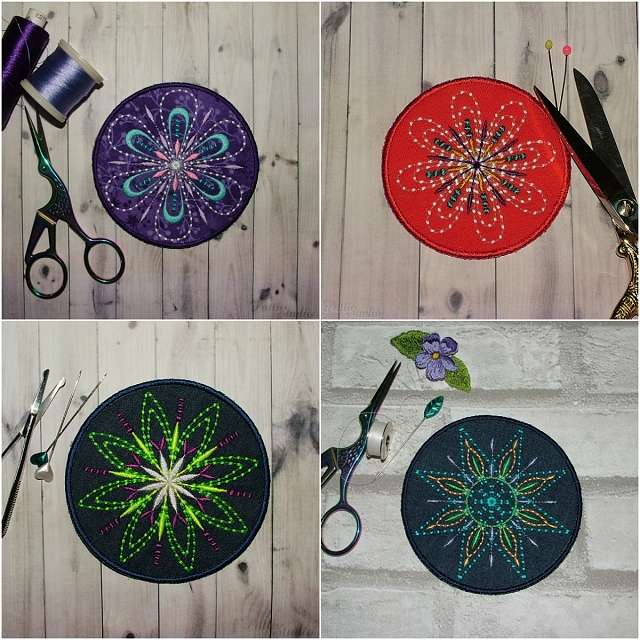 Druhou radost mi vzory začaly přinášet ve fázi jejich testování. Stejně jako první sadu mandal jsem je využila na hotové aplikace a byla to zábava si hrát s různými barvami.